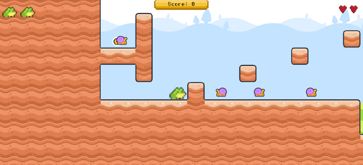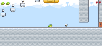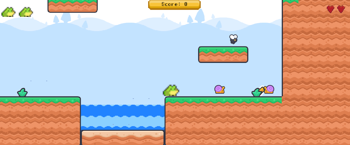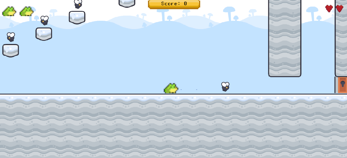 Player is a silly little frog (Complete with Idle, Walking, Jumping and Falling animations)